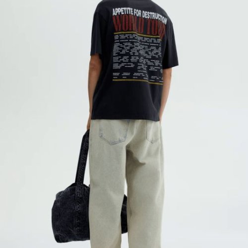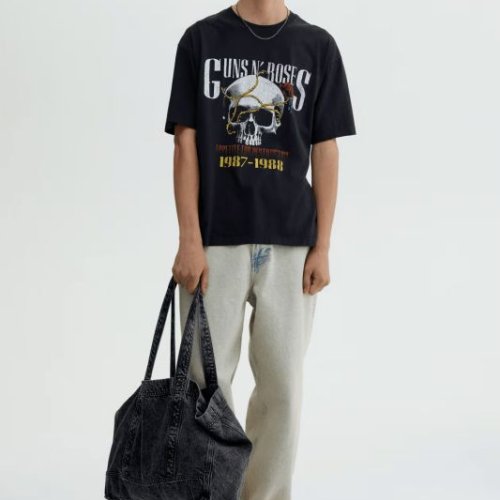 Gun and Roses Printed Mens Blue Oversized T-Shirt