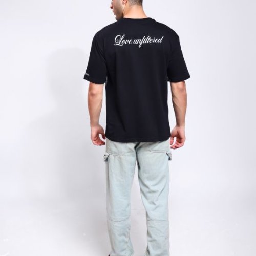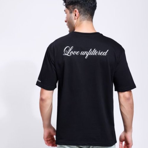 Love Unfiltered Printed Mens Black Oversized T-Shirt