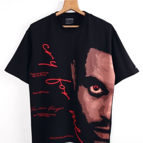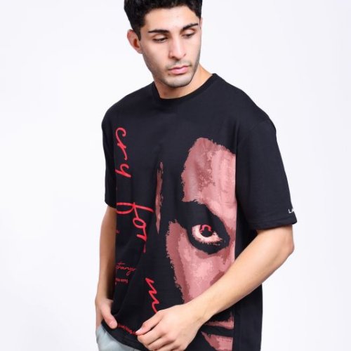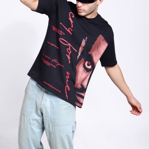 Back and Pink Printed Mens Oversized T-Shirt