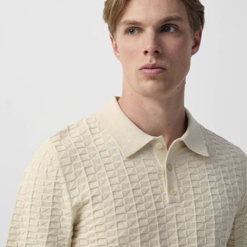Mens Jacquard OF White Cotton Polo T-Shirt