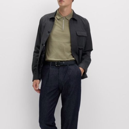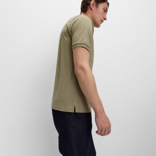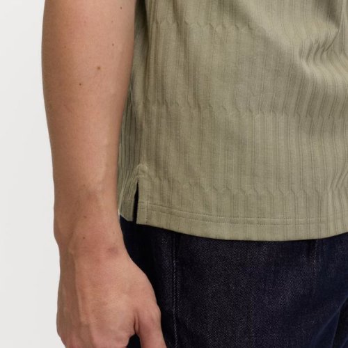 Mens Zip Polo Neck Olive Green Cotton T-Shirt