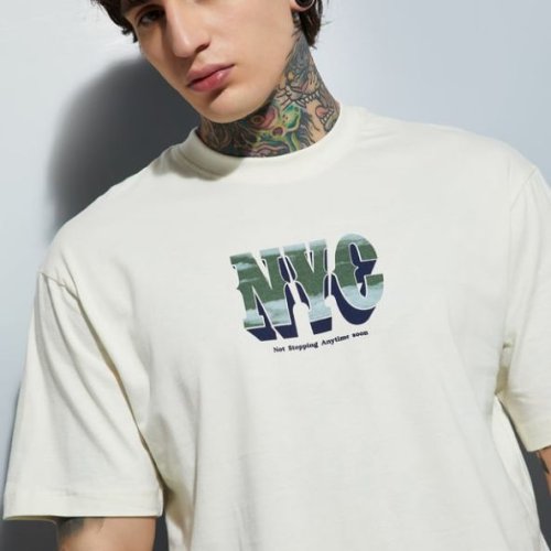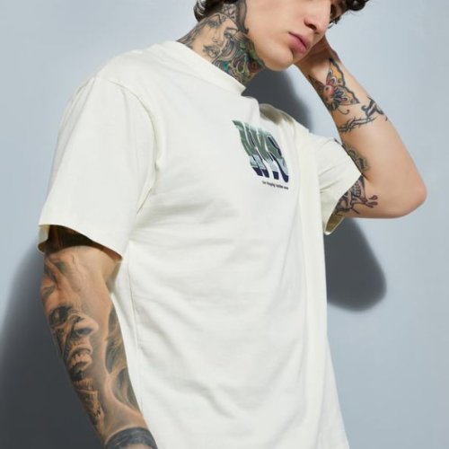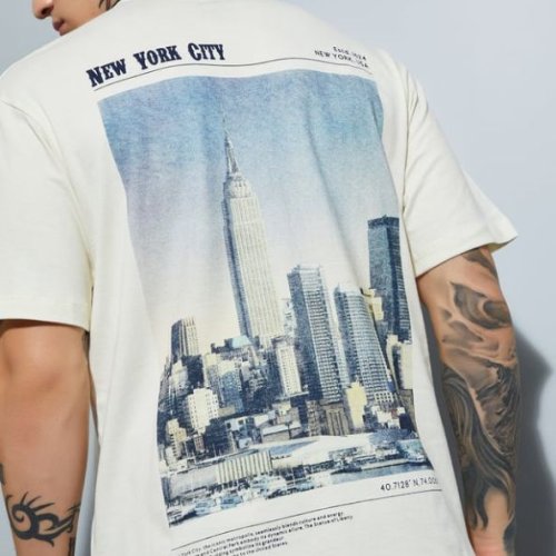 Mens White Cotton Round Neck Printed T-Shirt
