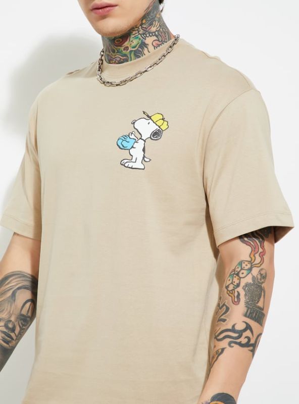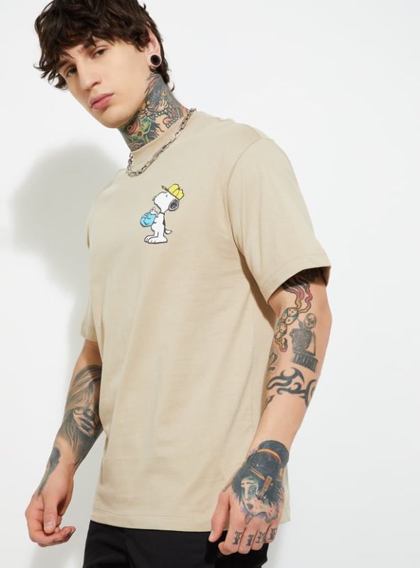 Home › Products › Mens Round Neck T-Shirts › Mens Beige Round Neck Cotton Printed T-Shirt