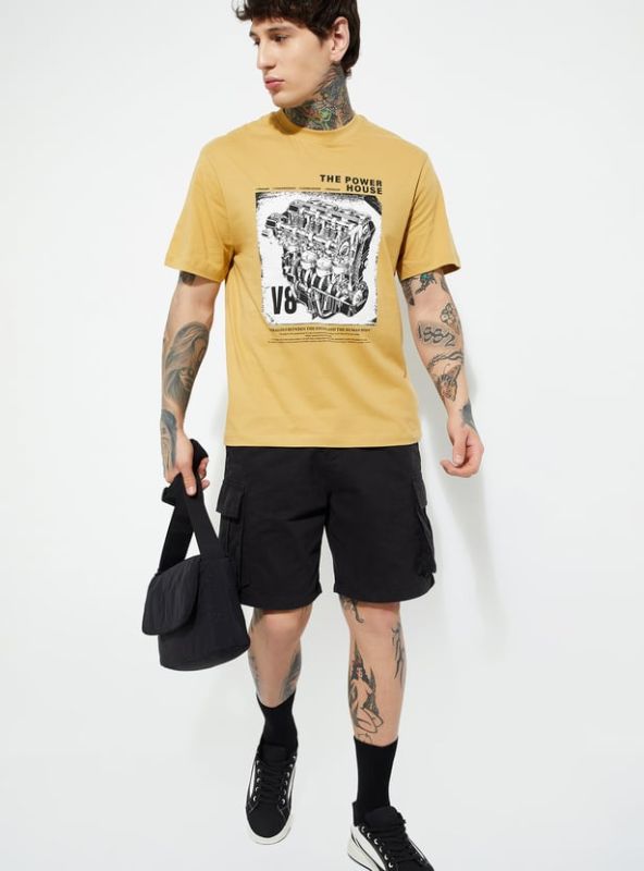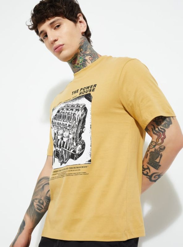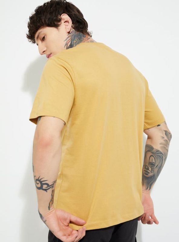 Home › Products › Mens Round Neck T-Shirts › Mens Mustard Round Neck Cotton Printed T-Shirt