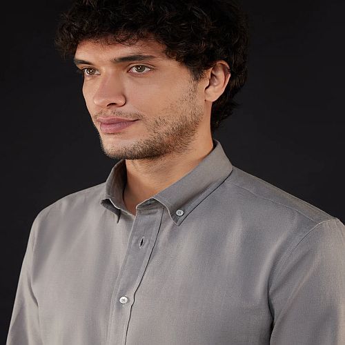 Home › Products › Mens Cotton Linen Shirts › Mens Plain Grey Cotton Linen Shirt